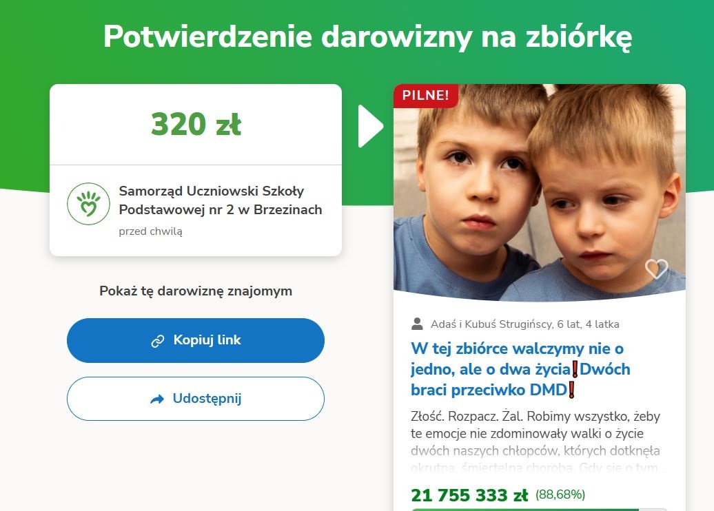 SU przeznaczył 320 PLN na pomoc dla Adasia i Kubusia.